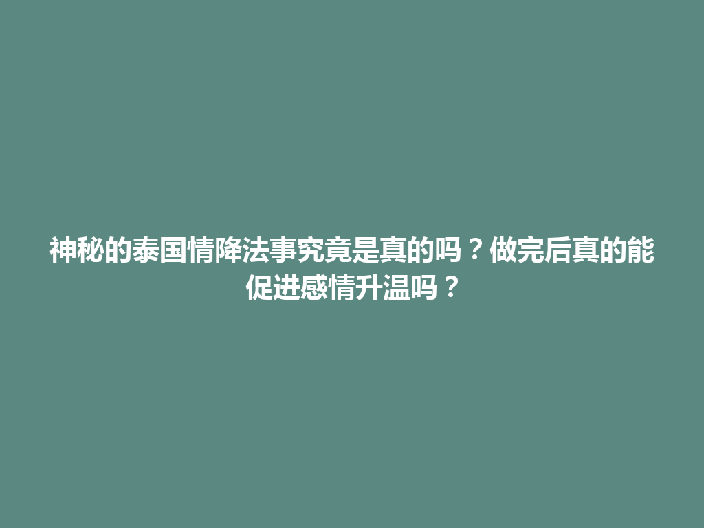 豆包网 情感资讯 乌伊岭区神秘的泰国情降法事究竟是真的吗?做完后真的能促进感情升温吗?