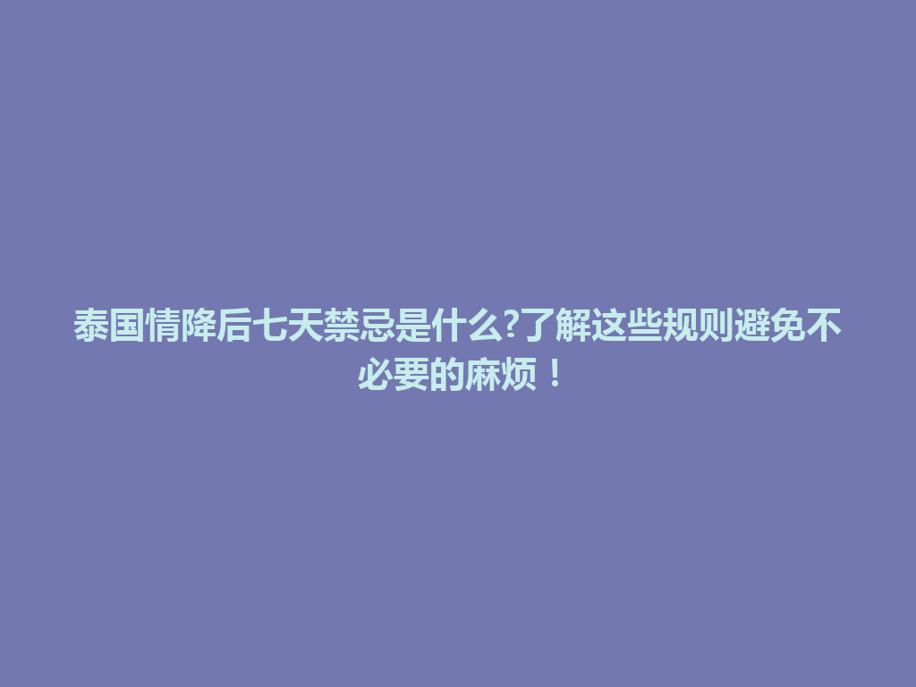 乌伊岭区泰国情降后七天禁忌是什么?了解这些规则避免不必要的麻烦!