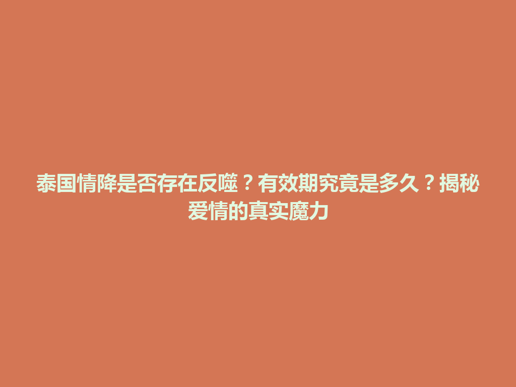 豆包网 情感资讯 乌伊岭区泰国情降是否存在反噬?有效期究竟是多久?揭秘爱情的真实魔力